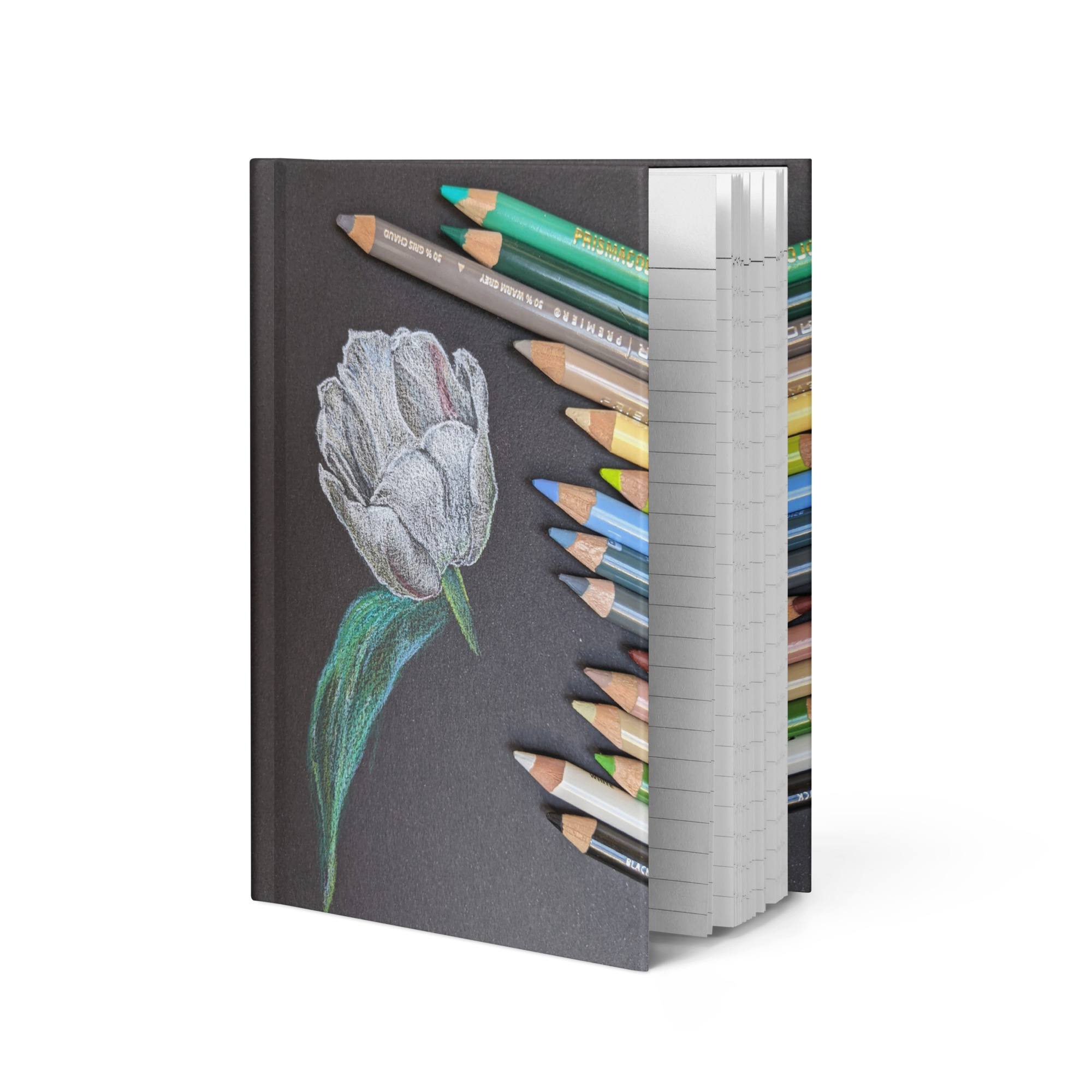 Capture your thoughts with a touch of botanical beauty. This matte hardcover journal features Libby Cripps’ Tulip Study artwork printed across the front and back cover, showcasing delicate tulip forms with expressive color and graceful detail. Durable, smooth to the touch, and perfectly sized for daily notes, sketches, or creative planning, it’s an elegant companion for writers, artists, and flower lovers alike.