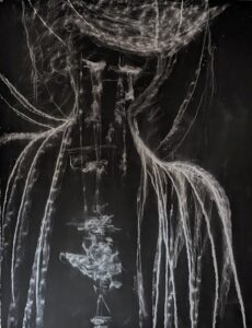 Cast upon the world, shadows diffuse and conceal. The offer shelter to the hurt and concealment to pain. Shadows are created by light, and here those shadows are themselves turned back into the light.